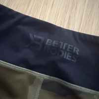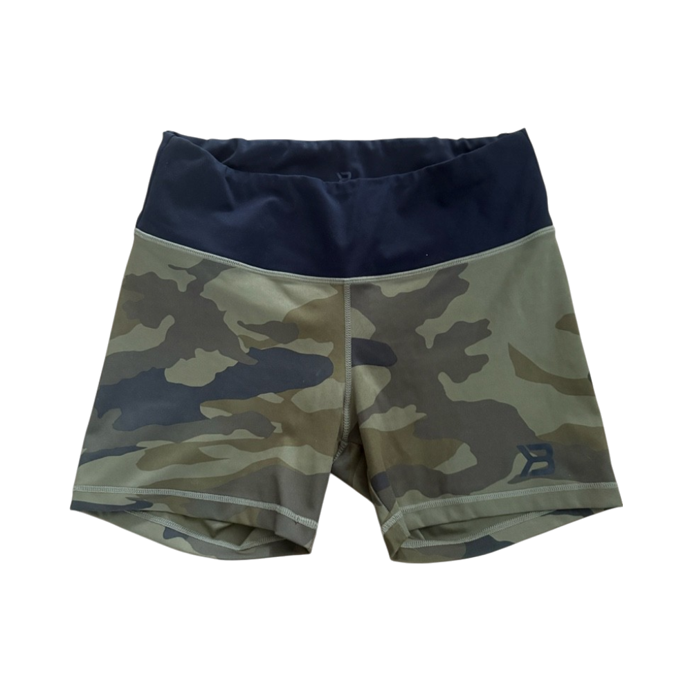 🖤 Better Bodies camoshortsit myyntiin. Näissä lahkeessa logo, sekä vyötäröllä takana vyötäröresorissa.
