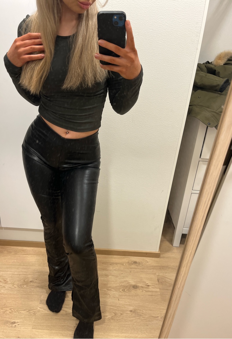 hyväkuntoiset nahkahousut, lahkeissa sisäpuolella halkiot