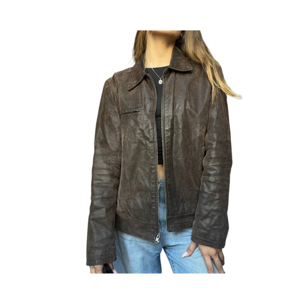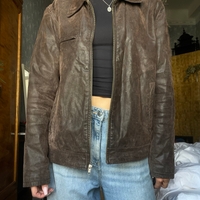 Ruskea nahkatakki, vetoketjullinen. Brown leather jacket