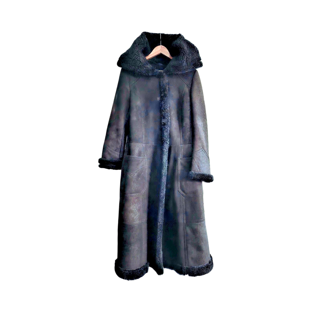 Authentic black sheep skin fur long coat