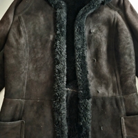Aitoa lampaannahkaa: pehmeää nahkaa päällisin ja sisäpinta pehmeää turkista. Iso suojaava huppu. Kokopitkä. Pitää kylmyyttä, kosteutta ja tuulta, eli olet 100% suojassa.