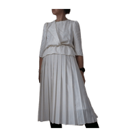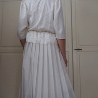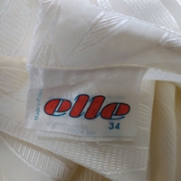 Kotimainen Elle-merkkinen mekko. Puhvihihat. Todella kaunis yläosan kuosi (kuva 3). Helmaosa on vuoritettu. Vyötäröllä kuminauha. Arvio materiaalista, että on polyesteriä. Kokomerkintä 34. Kainalo-kainalo noin 50cm, vyötärönympärys 66...88cm, niska-helma 124cm.