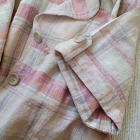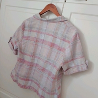 Ruudullinen paita/jakku. Materiaali pellava-puuvillasekoitetta. Kokomerkintä 46. Kainalo-kainalo 53cm, niska-helma 52cm.