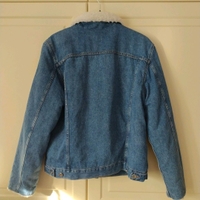 Teddy-vuoritettu farkkutakki. Kokomerkintä L. Kainalo-kainalo 54cm, niska-helma 59cm, hiha kainalosta 44cm.