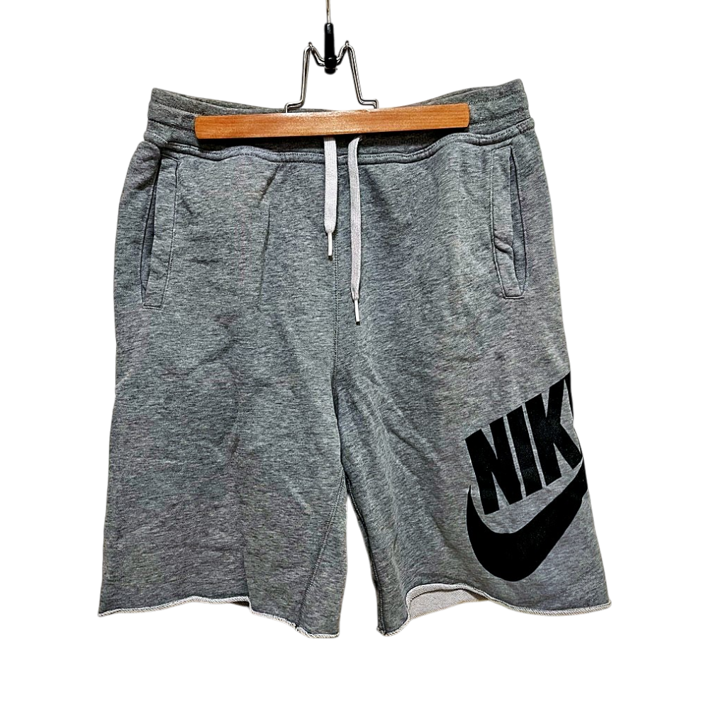 Harmaat Nike shortsit, musta logo, vyötärön nyörit