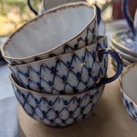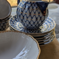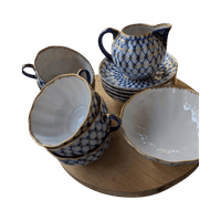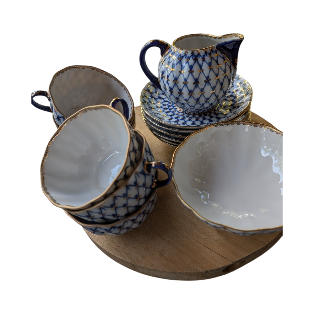 Lomonosov verkko tea set (6 cups+ 6 saucer plates + sugar bowl + milk jug)