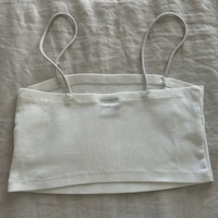 Lyhyt ribbileuleen tapainen valkoinen toppi naruolkaimilla, koko M