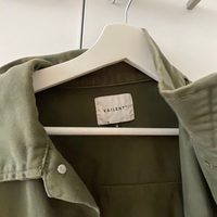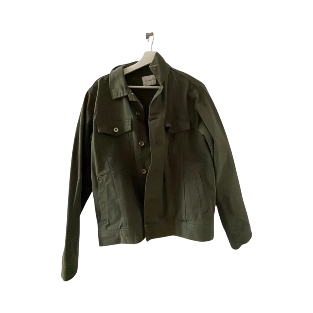 Olive-värinen kevyt takki, napit edessä, kokoa M.