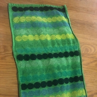 2 kpl Marimekon keittiöpyyhettä ja 2 kpl pientä käsipyyhettä. Punapalloinen keittiöpyyhe aikalailla neliön muotoinen. Kunto hyvä, mutta varsinkin valkopohjaisessa keittöpyyhkeessä vähän värit haalistuneet.