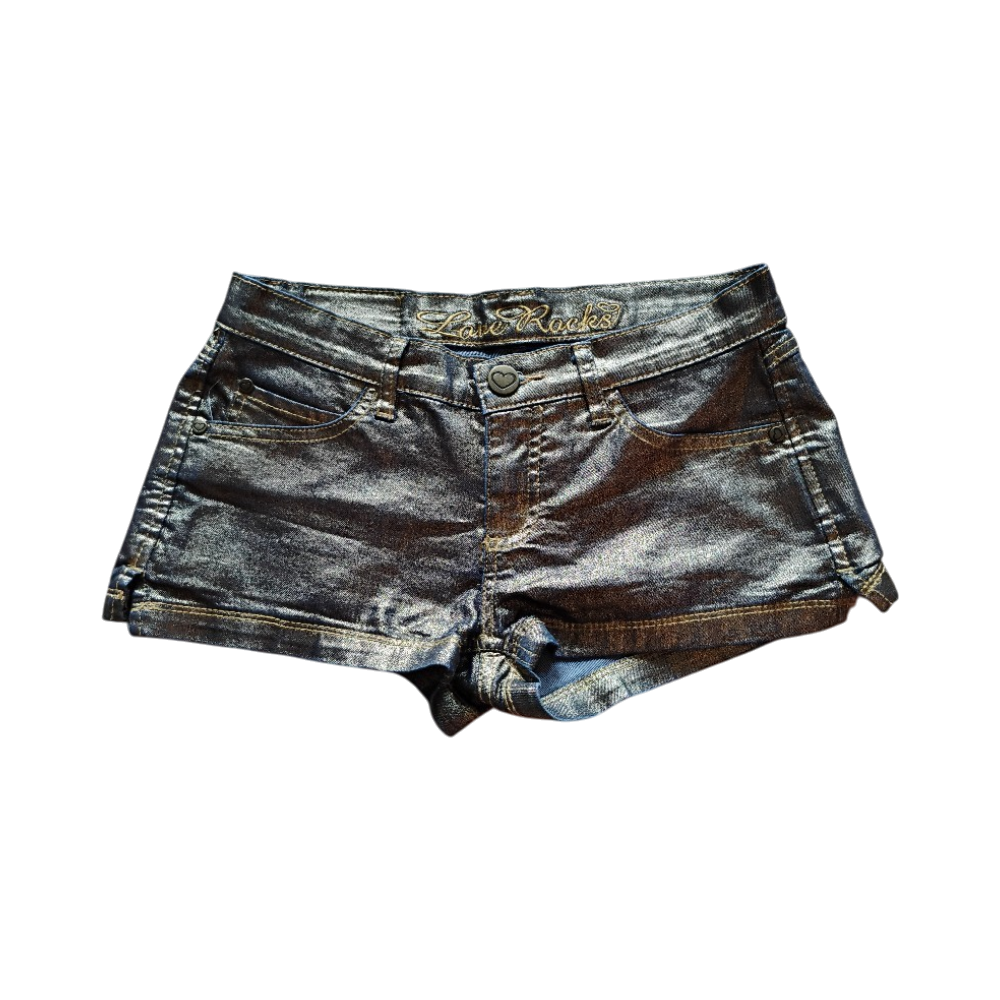 Metallinhohtoiset farkkushortsit, lyhyt malli