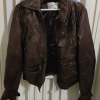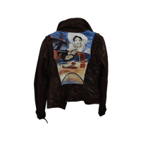 Ruskea naisten nahkatakki, Animaatioaiheinen selkäprintti.