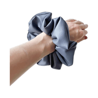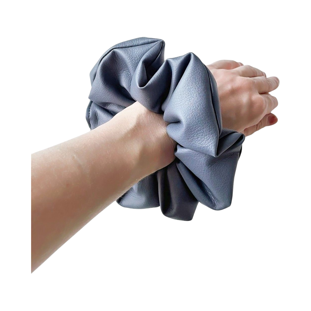 Käsintehty harmaa scrunchie. Materiaali : keinonahka. Halkaisija n 15cm.