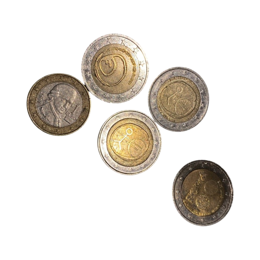 erilaisia kolikko, eri maiden kansallisia puolia.