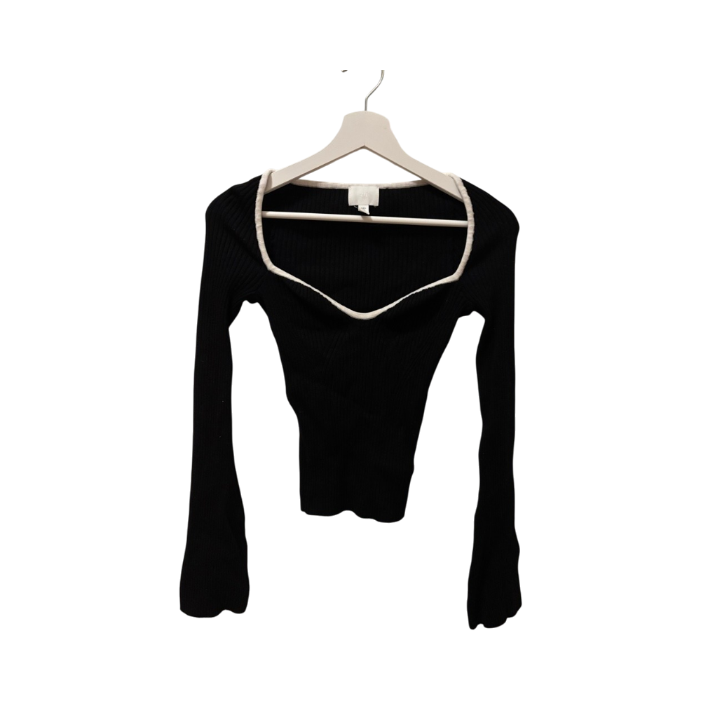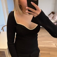 Vartalonmyötäinen ribbineule, syvä neliömäinen pääntie, pitkä hihat.