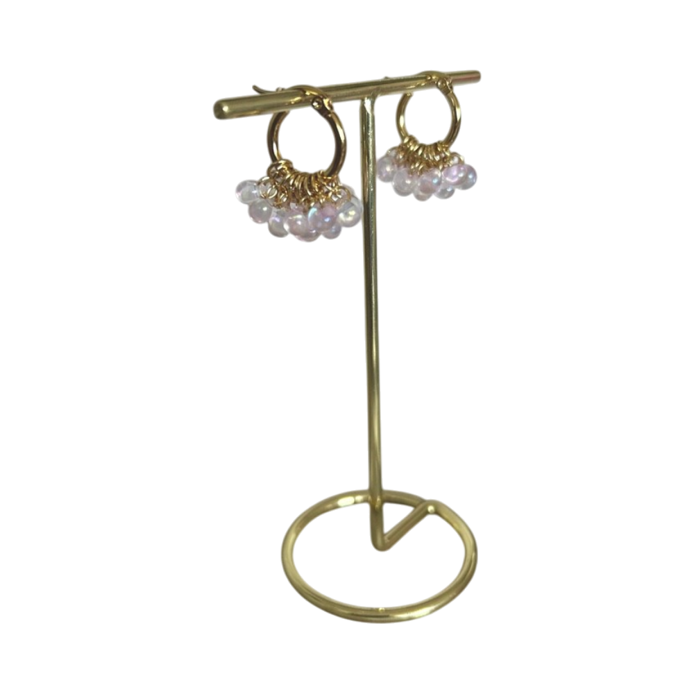 Käsintehdyt korvakorut lasihelmillä. Saatavilla sekä hopeisena että kultaisena. Renkaan halkaisija noin 1,5 cm. Lasihelmistä huolimatta hyvin kevyet🫶🏽 Väri: haalea vaaleanpunainen