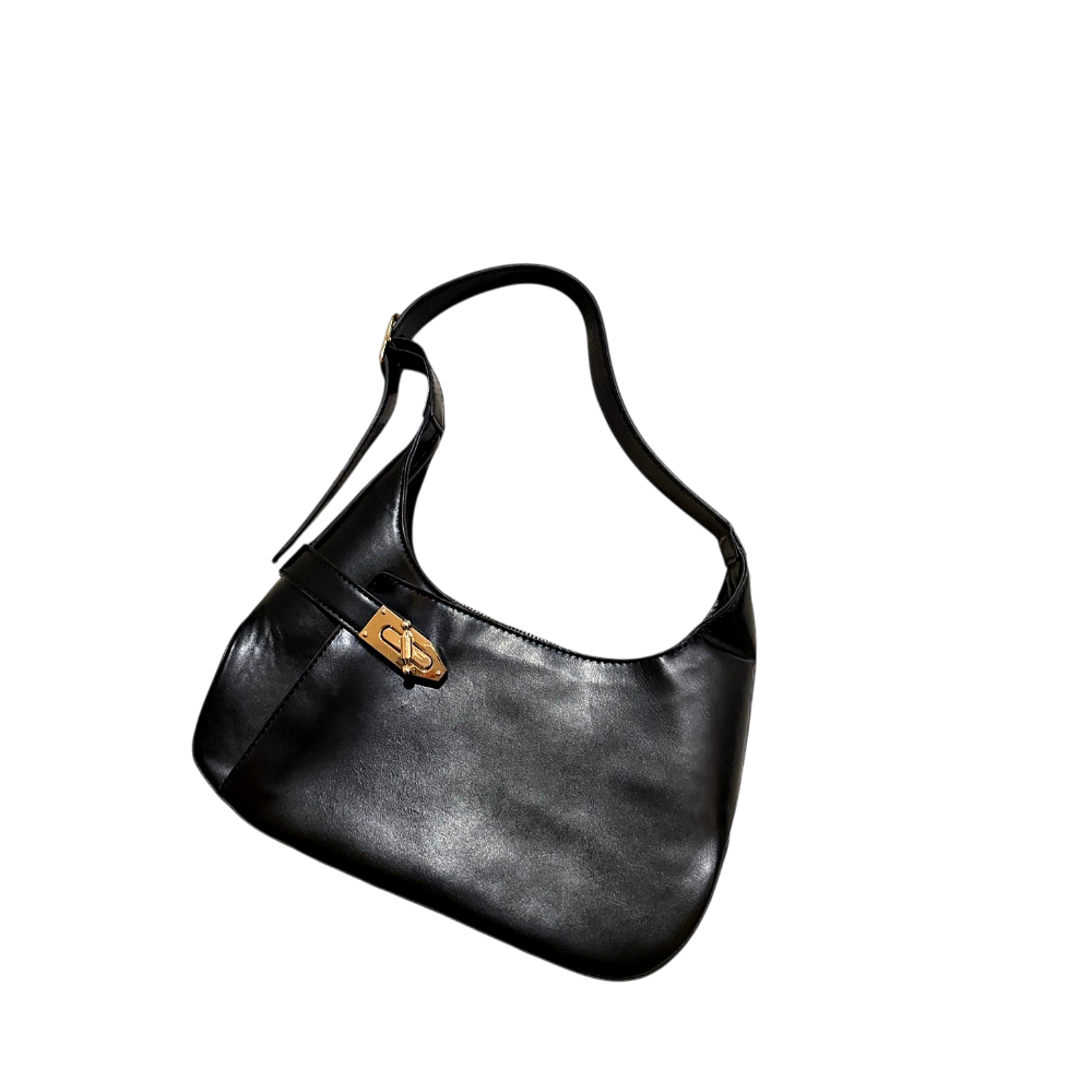 Kaunis musta käsilaukku, kultaisella yksityiskohdalla.🖤