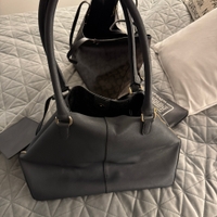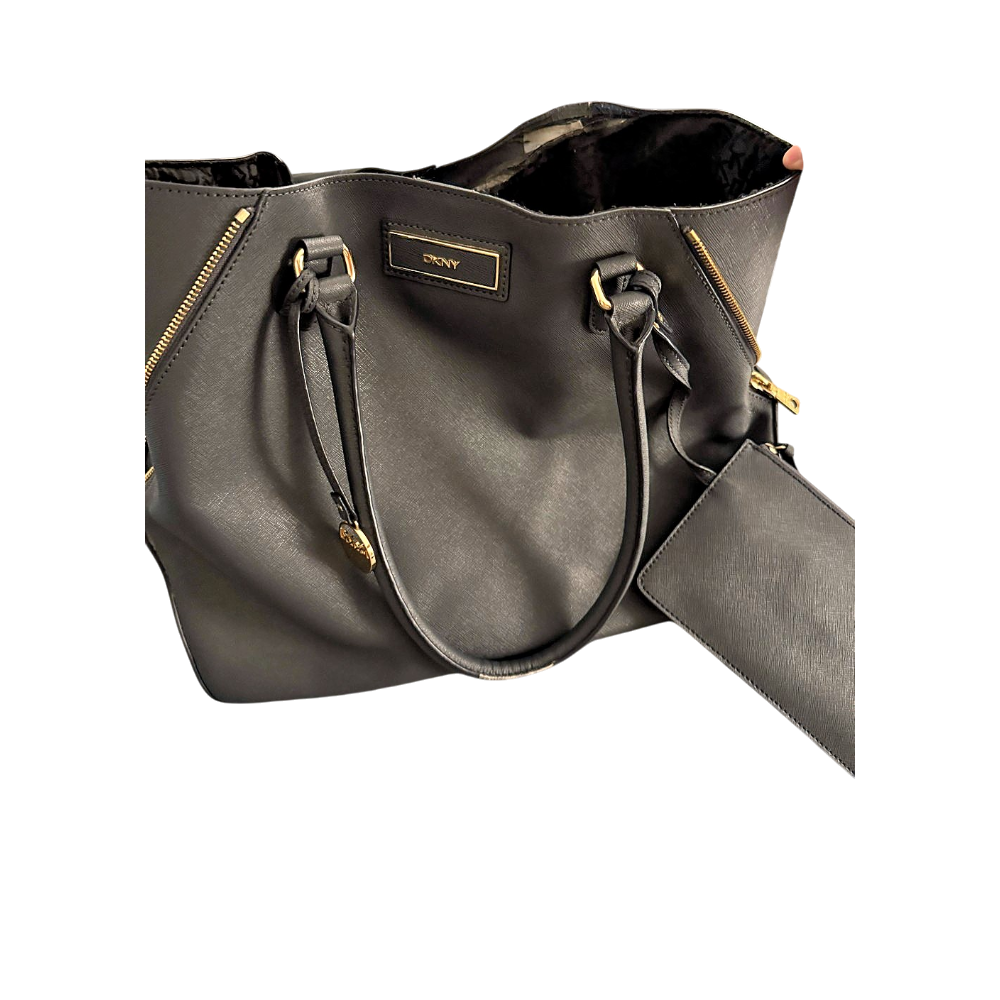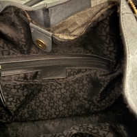 DKNY 100% nahkaa oleva käsilaukku. Kunto on tyydyttävä, ulkoisesti hyvässä kunnossa, sisällä pieni repeämä kankaassa, jonka voi korjauttaa suutarissa. Sisältää pienen sisälaukun.