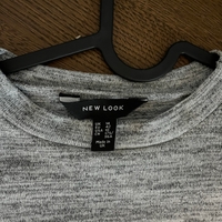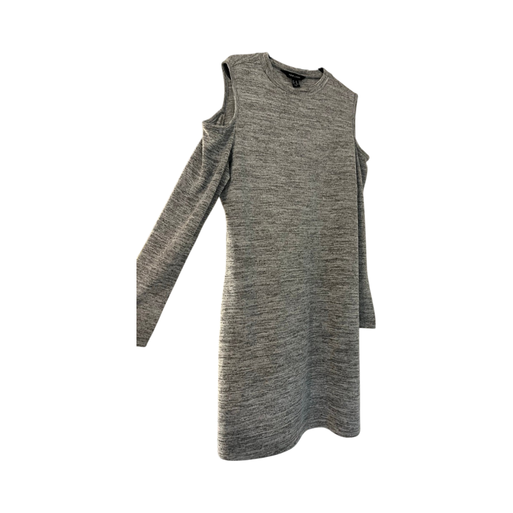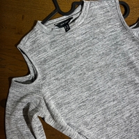 Ohut harmaa meleerattu cold-shoulder neulemekko.