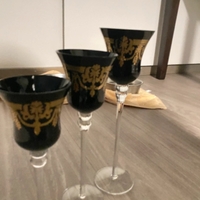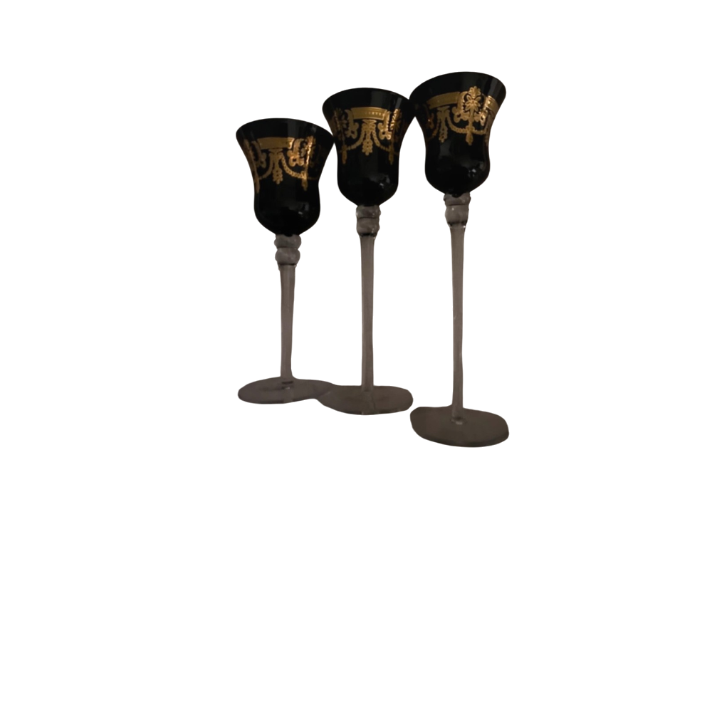 Mustat lasilasit kullanvärisellä kuviolla, korkea varsi.