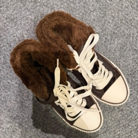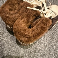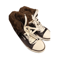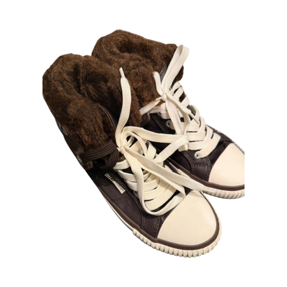 Nämä ruskeat, korkeavartiset tennarit yhdistävät katu-uskottavan ilmeen ja kylmien säiden käytännöllisyyden. Keinoturkisvuori tuo pehmeyttä ja lämpöä, kun taas vaalea kumipohja ja kengännauhat pitävät kokonaisuuden raikkaana. Mukavat jalassa ja näyttävät käytössä - täydellinen valinta rentoon talvityyliin sekä muihin kylmiin keleihin.