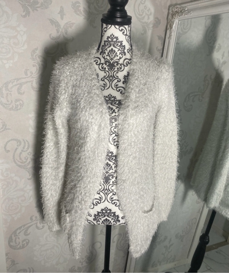 Pehmeä ja pörröinen avonainen neule taskuilla. Merkki YD. Koko S