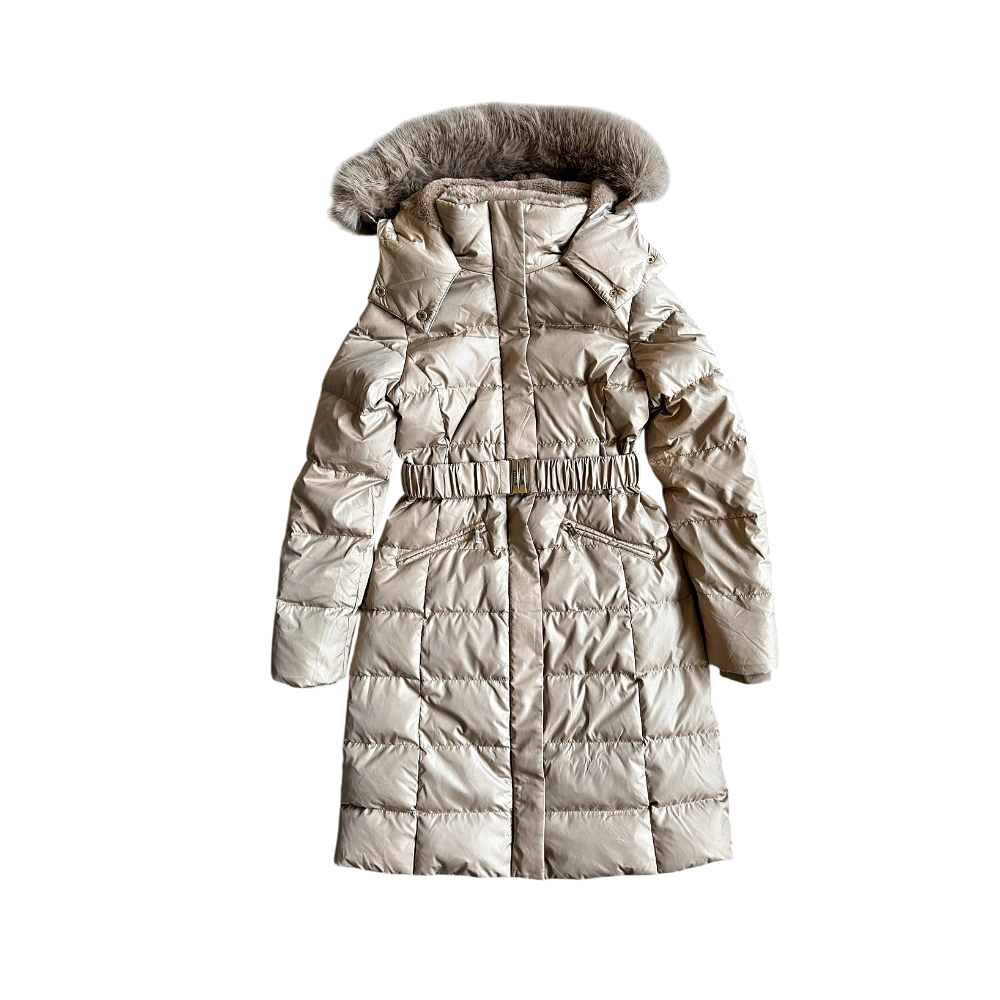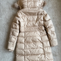 Beige GUESSin pitkä untuvatakki koossa XS. Takki on lämmin, kevyt ja miellyttävä käyttää, sillä siinä on eettisesti hankittu untuvatäyte ja pehmeä vuori. Vyötärön kiristys tuo kauniin istuvuuden ja takin pituus suojaa hyvin kylmässä säässä. Hupussa on irrotettava tekoturkisreunus, ja kokonaisuus on siisti sekä tyylikäs. Takki on käyttämätön.