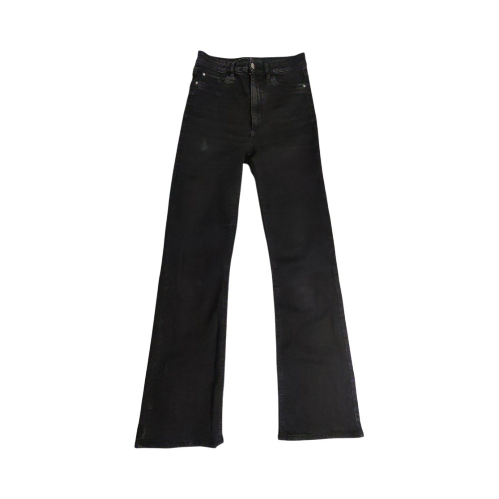 Mustat bootcut-farkut, hieman käytetyt, korkeavyötäröiset. Vielä siistit farkut. Hajusteeton pesu, ei lemmikkejä eikä tupakointia.