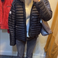 Black women's padded down jacket with Moncler logo patch. Bought from thriftstore for 180€. Told me it authentic but I don’t know(?)