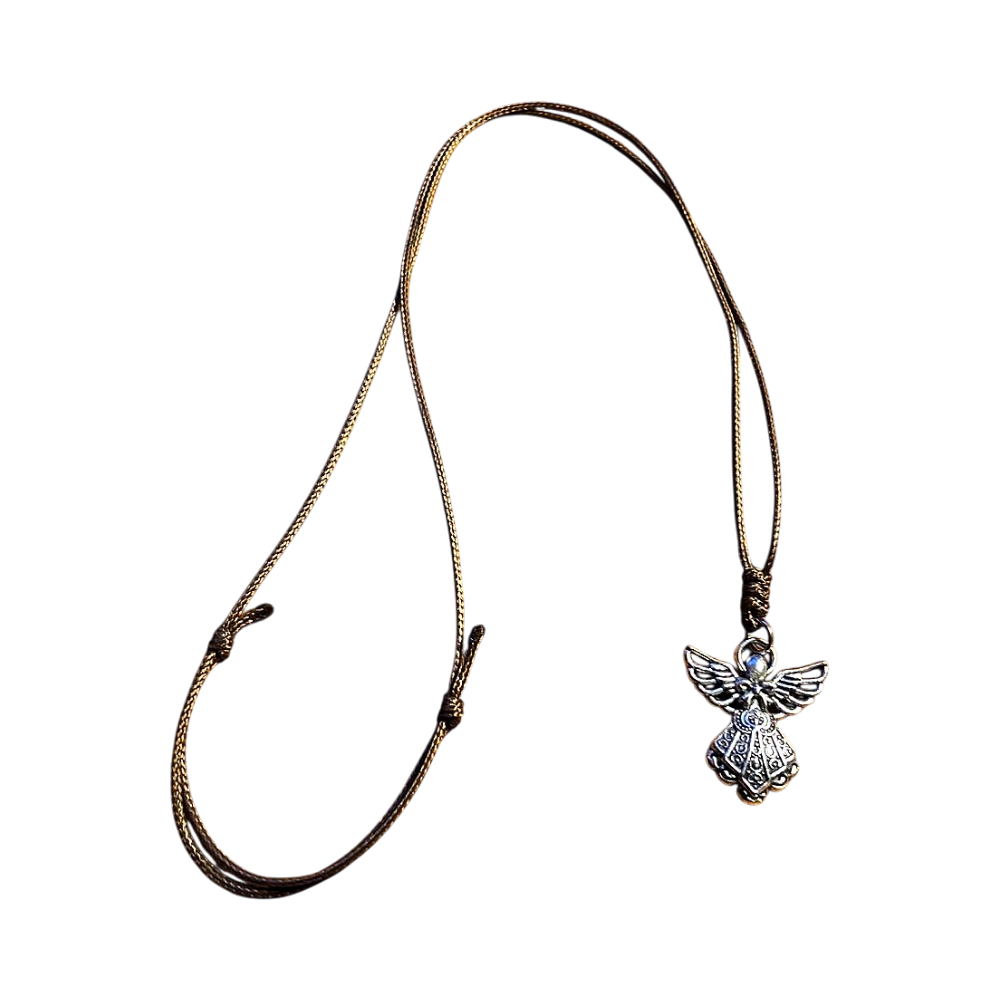 Kaunis enkelikoru, liukusolmut joista voi säätää pituuden itselle sopivaksi