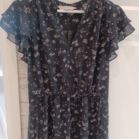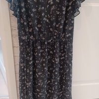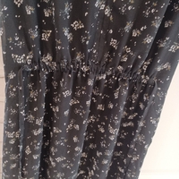 Kevyt musta mekko valkoisella kukkakuviolla, lyhyet hihat. Koko 38. Käytetty kerran. Kainalo-kainalo n.50cm. Kangas ei jousta. Vyötäröllä kiristysnauha. Ei valitettavasti mahdu minulle enää.