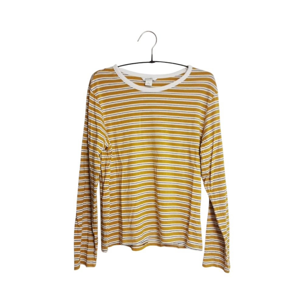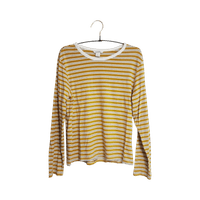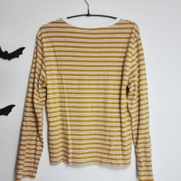 Pehmeä kivasti laskeutuva raitapaita. Sinappi/valkoinen/musta. Käytetty pari kertaa. Kunnossa ei mainittavaa.