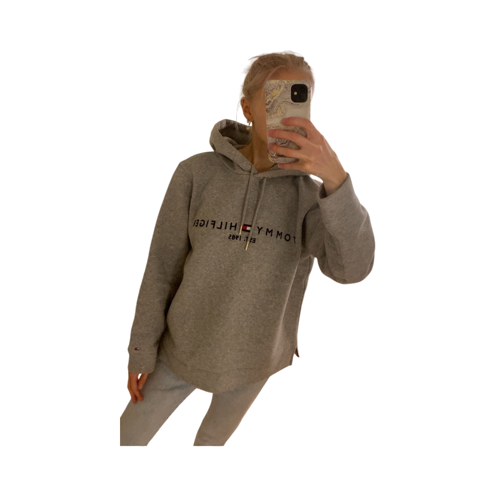 Miellyttävä, oversized harmaa Tommy Hilfiger -huppari.