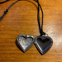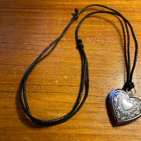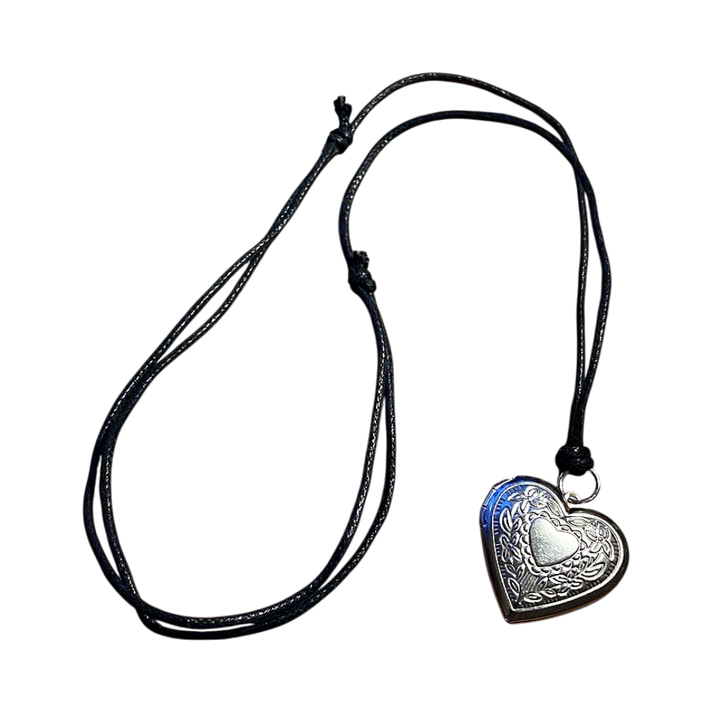Kaunis sydänmedaljonki, liukusolmut joista voi säätää pituutta itselle sopivaksi