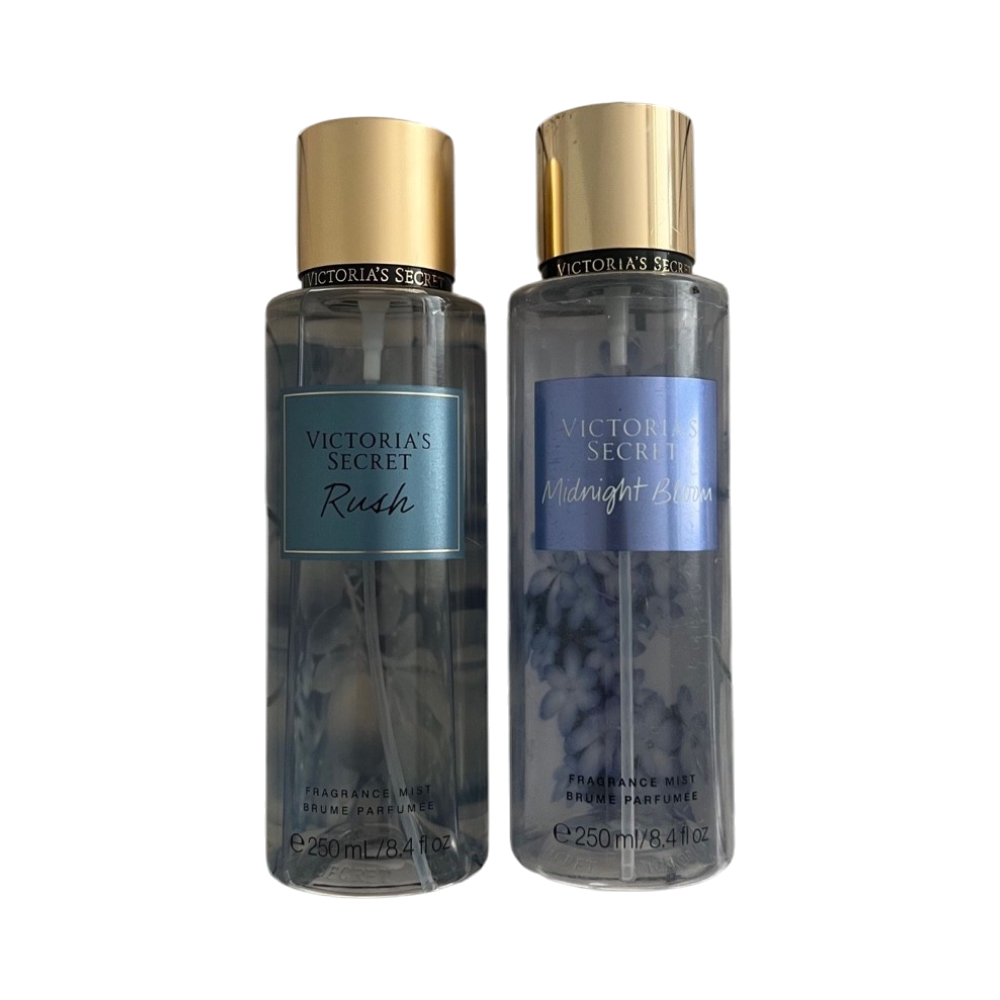 Two Victoria's Secret body mists, 250ml each, floral/woody scents.