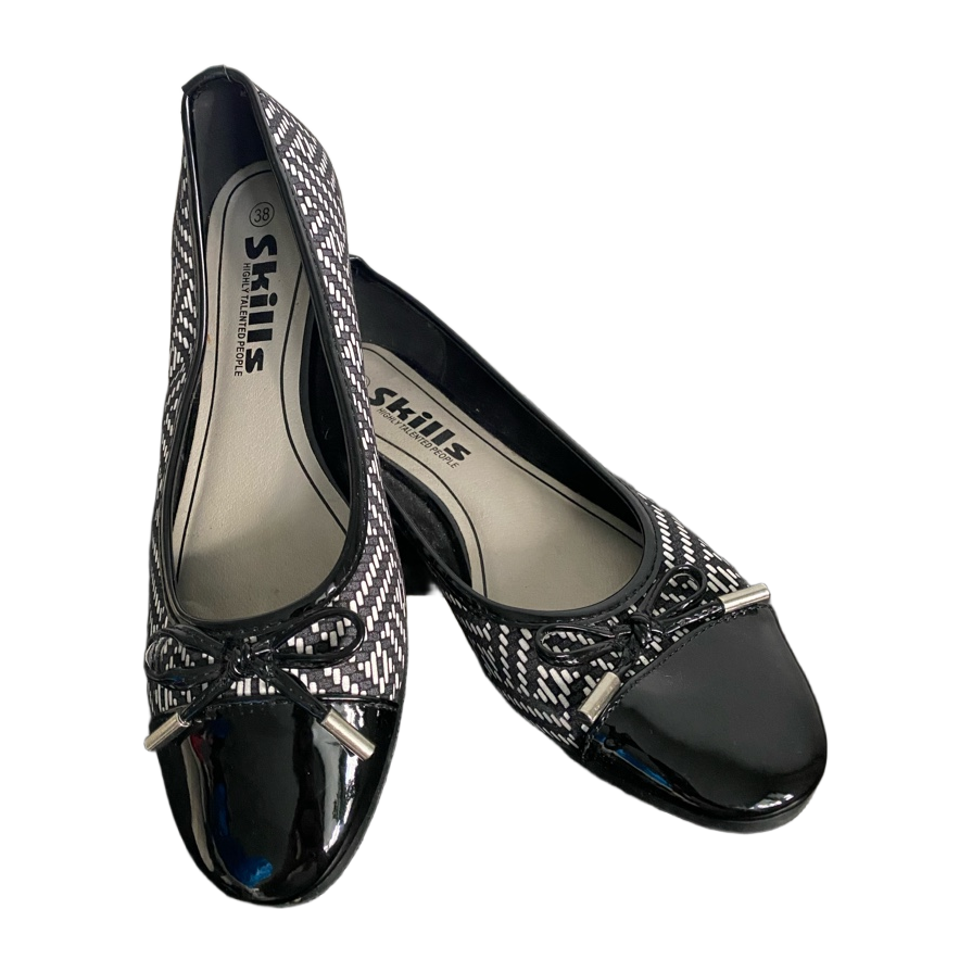 Musta-valkokuviolliset ballerinat kiiltävällä kärjellä ja rusetilla. Siistin näköiset, hyvä kuntoiset. Tästä esimerkiksi kevään ja kesän juhliin ✨❤️