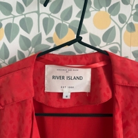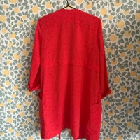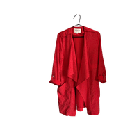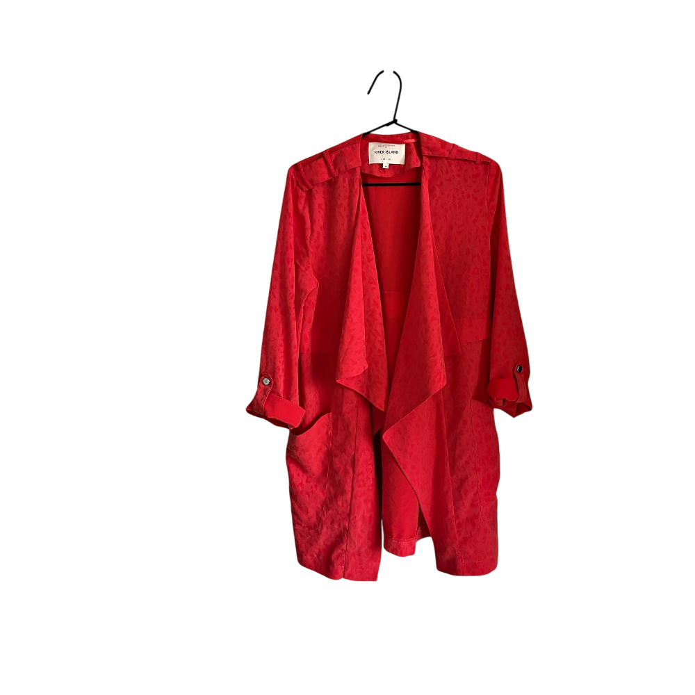 Tyylikäs punainen jakku, muotoiltu leikkauksella. Taskut ja nepit.