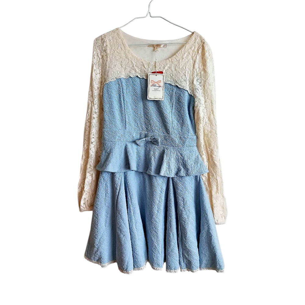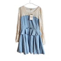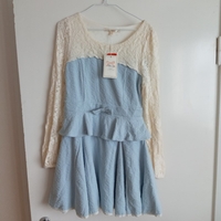 Light blue dress with beige lace sleeves and peplum waist sweet style. New with tag.
