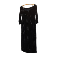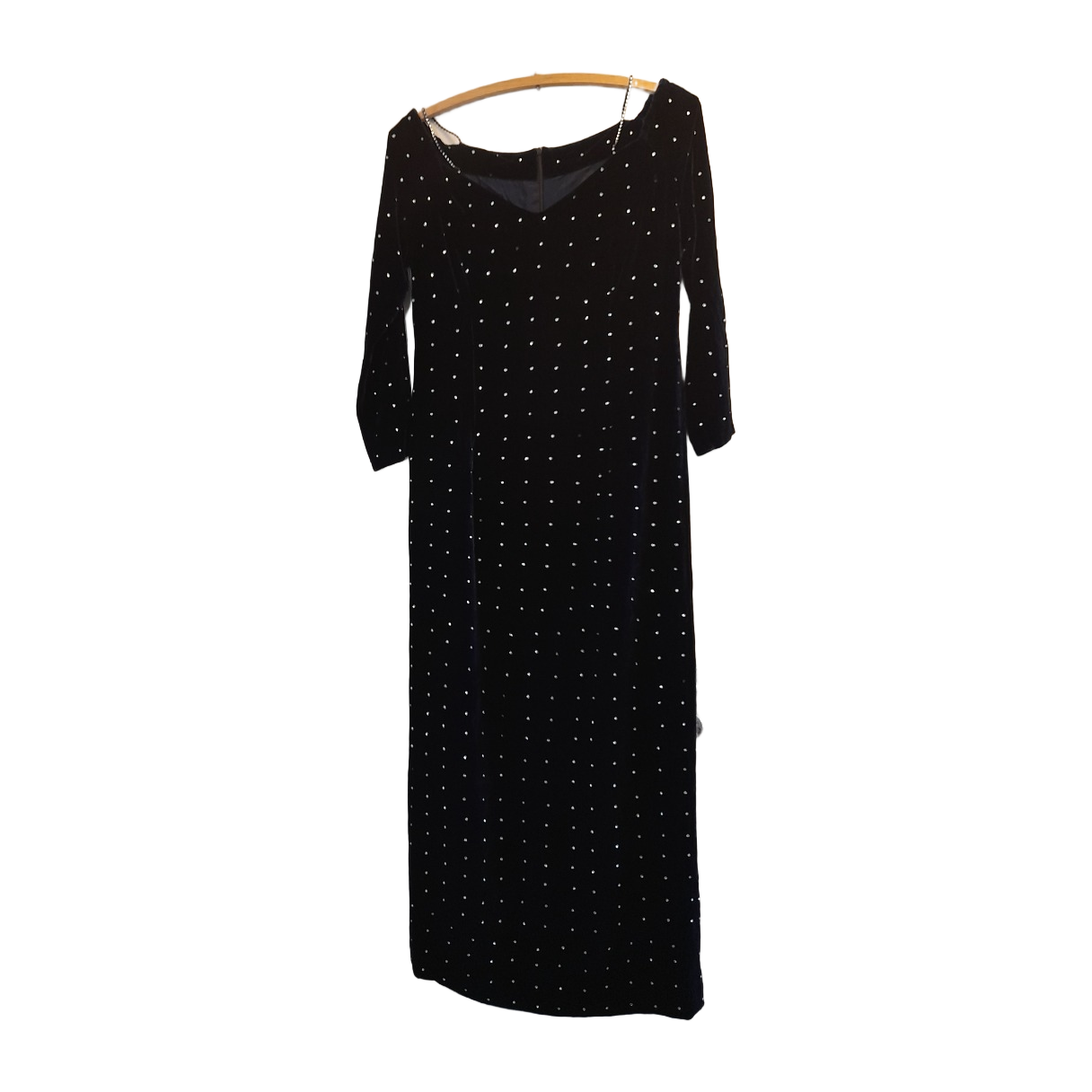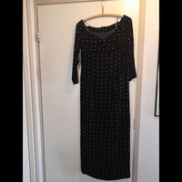 "Timantein" koristeltu iltapuku ja pussukka. Niska-helma pituus n. 134cm, puolihihat.