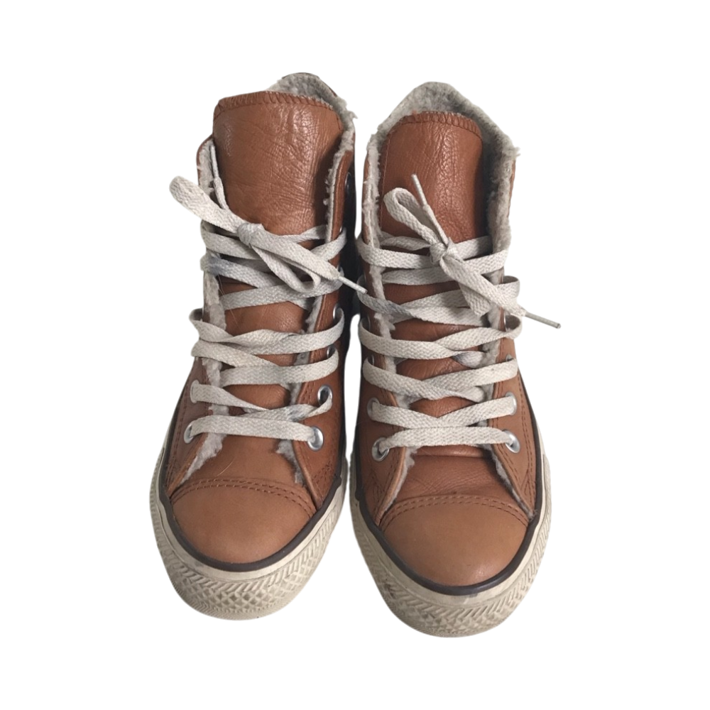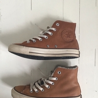 Converse All Star nahkaiset talvitennarit. Koko 37, ei kovin paljoa käytetty, tosin sisällä vähän kulumaa. Värinä kaunis konjakinruskea. Viime syksynä plankattu ja kerran tainneet talvella olla käytössä, omat varpaat ei näillä oikein tarkene.