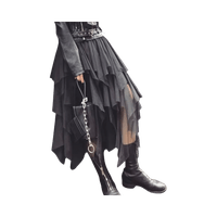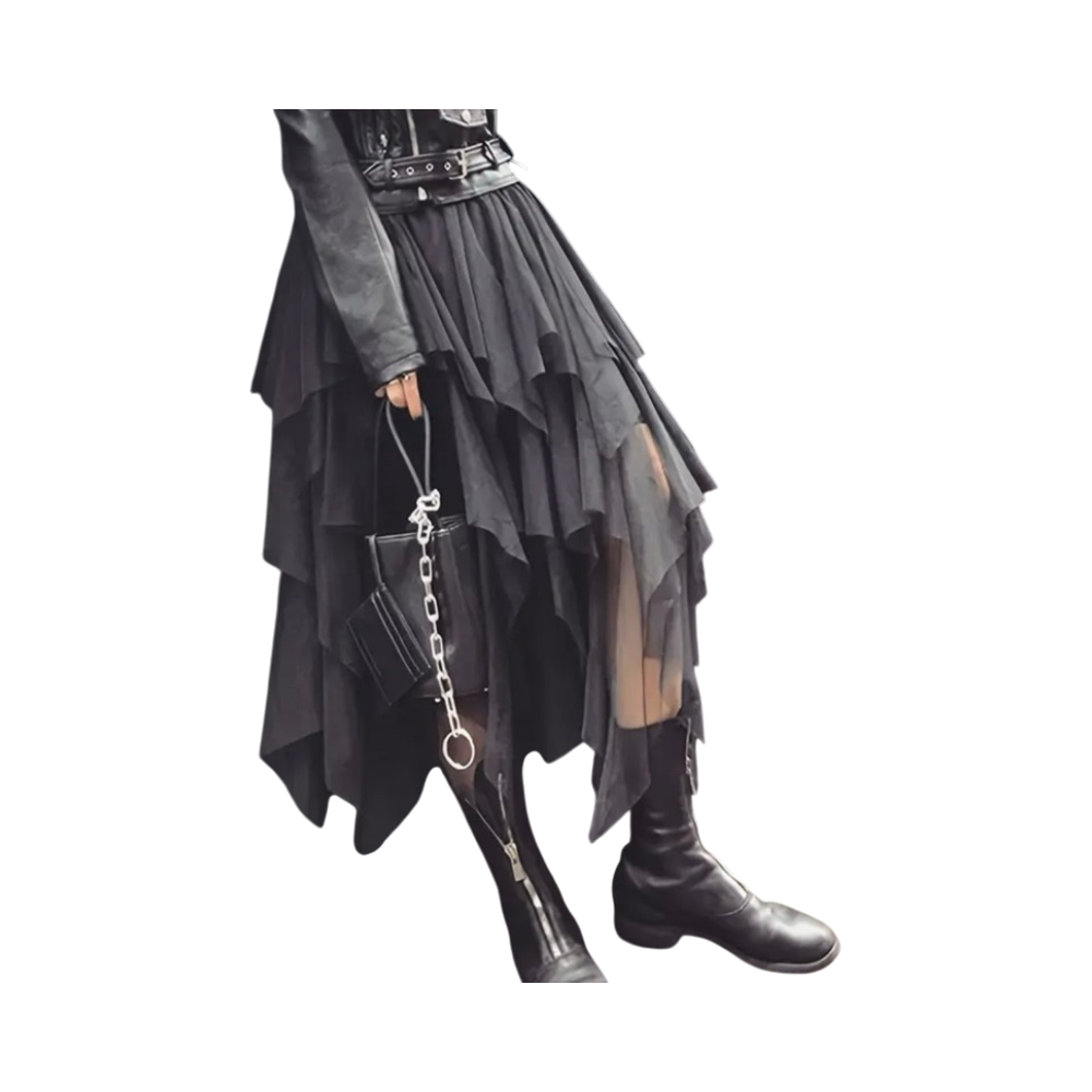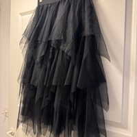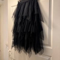 Monikerroksinen tyllihame, polvipituus, elastinen vyötärö.