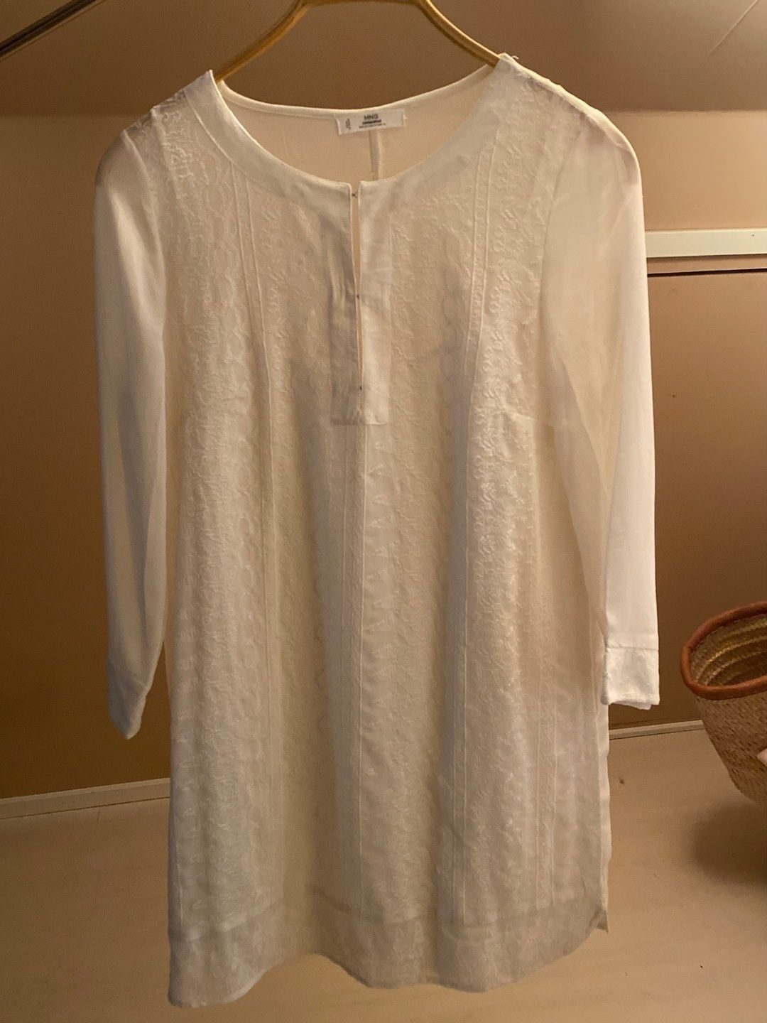 Ihana vaalea mekko Mangosta. Kaunis kuvio edessä. Alusmekko alla.