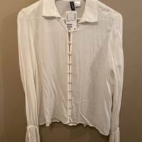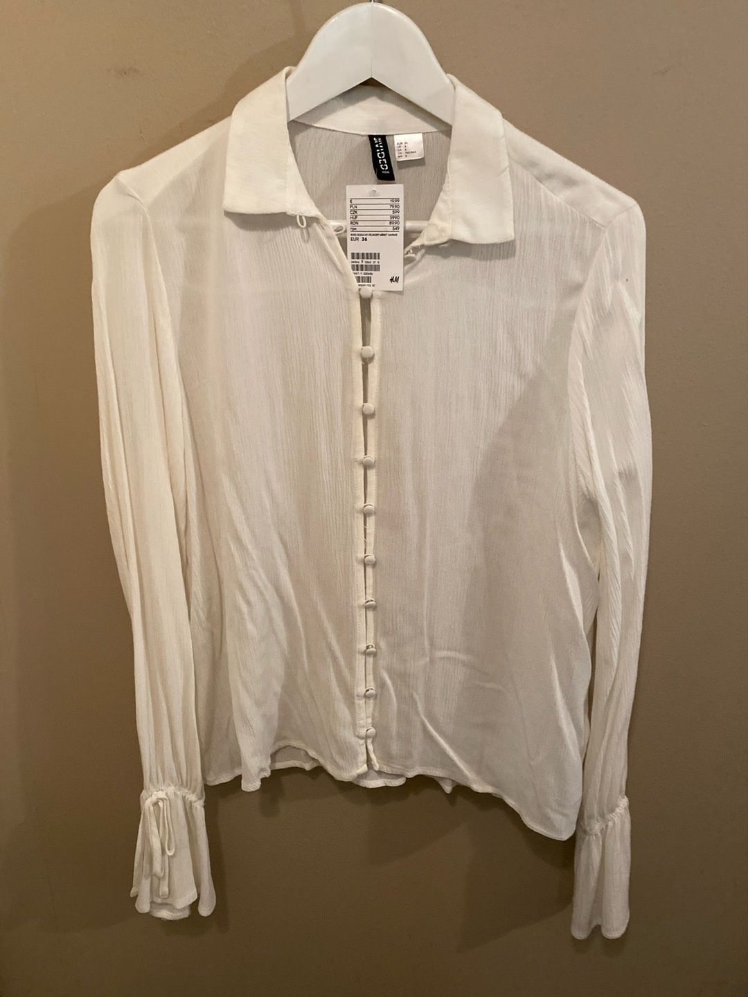 Kaunis vaalea paita. Pienet napit edessä, levenevät hihat missä resori. Ihanaa laskeutuva kreppi kangasta.