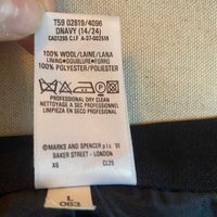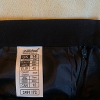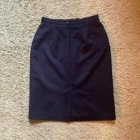 Musta villahame, ei mitään käytön jälkiä. Itselläni (169 cm) ulottuu hieman polven alapuolelle. Tarkat mitat kokolapussa. Vastaa kokoa 38. Edessä ja takana noin 15 cm halkiot.