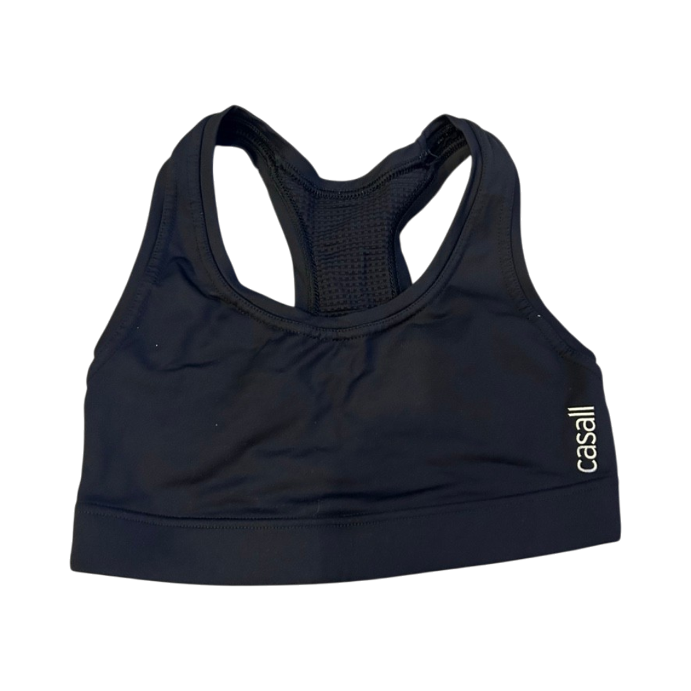 Mustaa tukevaa treenitoppia, hengittävä selkäosa.