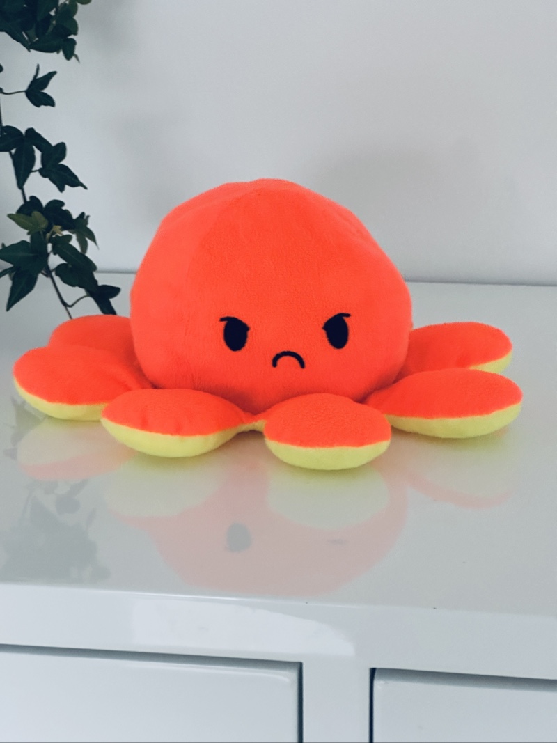 Kaksivärinen käännettävä pehmo, ilme muuttuu vihreästä oranssiksi.erinomainen kuin uusi, puhdasta kotista