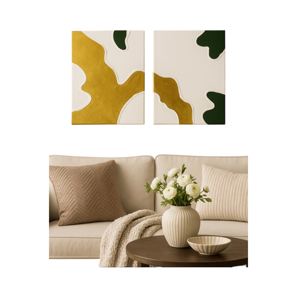 Käsintehdyt abstraktit taideteokset nimeltä ‘Rohkeus’. Oman käsialani työ. Kohotekstuuria ja akryylimaalausta. Modernit ja tyylikkäät sisustuselementit. Koko noin 40 × 30 cm per teos.