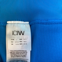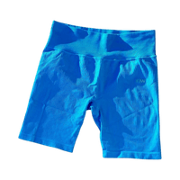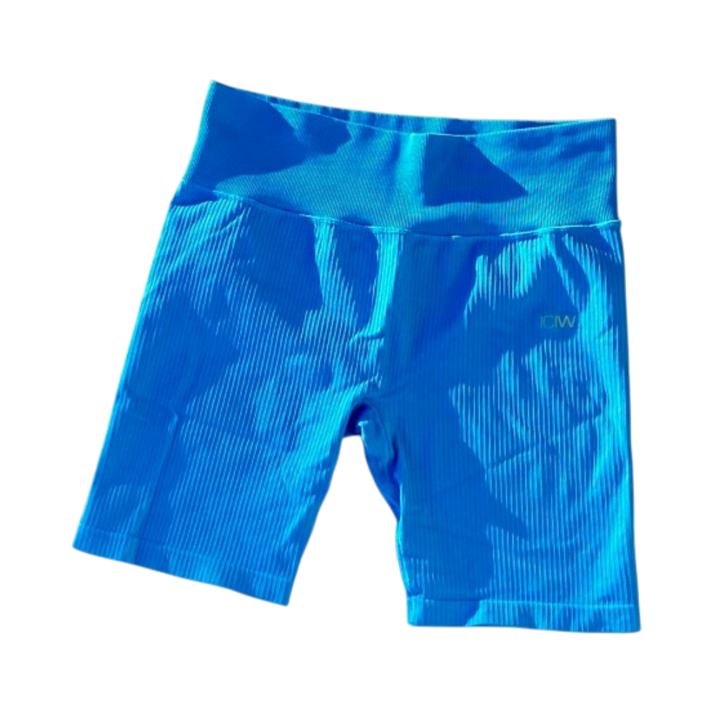 Siniset ribbikorkeavyötäröiset treenishortsit.