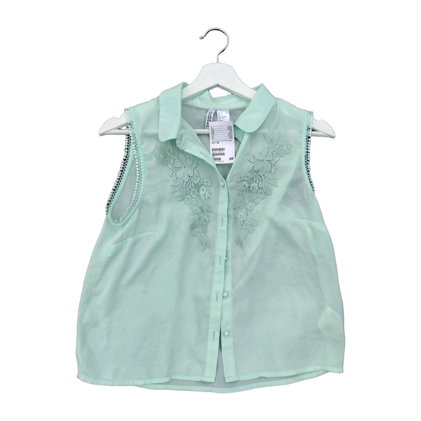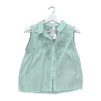 Mintunvihreä hihaton ohut paita. Laput kiinni.