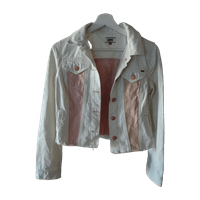 Uudenveroinen valkoinen farkkutakki.