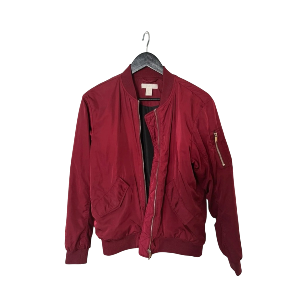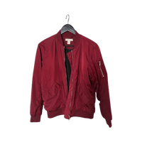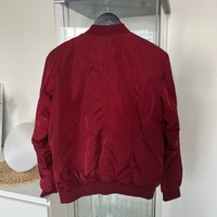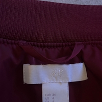 Bomber takki on kiiltävää ja liukaspintaista kangasta, takin malli on hieman pidempi kuin normaalin takin mitta. Moitteettomassa kunnossa